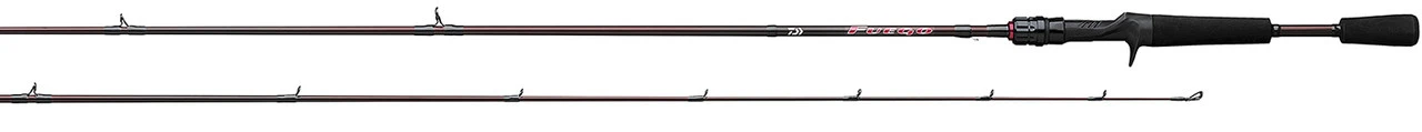 The Daiwa Fuego Casting Rods are an ideal choice for anglers looking for a rod that features the quality construction that Daiwa is known for at an affordable price. The Fuego Series includes rods with actions and tapers that are perfect for bass fishing. Whether you’re looking for a shorter, medium-light powered rod for fishing jerkbaits and topwaters, or a long, heavy powered rod for flipping, pitching, and heavy cover fishing, the Fuego Casting Rods have you covered at a smart price. All models are equipped with aluminum oxide guides and fitted with comfortable EVA split grip handles.